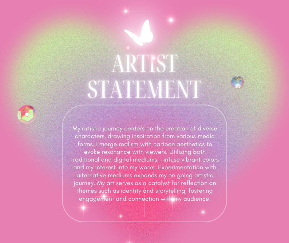 Priscilla Morado is an artist from the Rio Grande Valley. Currently pursuing a Bachelor of Art with a teacher certification at The University of Texas Rio Grande Valley, Morado’s work is a journey of exploration. She creates diverse characters inspired by various media forms, blending realism with cartoon aesthetics to resonate with viewers. Utilizing both traditional and digital mediums, Morado infuses vibrant colors and intricate details into her work. Experimentation with alternative mediums continually expands her artistic capabilities.Morado's art prompts reflection on themes such as identity and storytelling, inviting engagement and connection with her audience. She has contributed to education through various paths, including teaching in multiple schools via the “Children’s Museum of Brownsville mini makers program,” a platform dedicated to integrating science and design through artistic expression. Additionally, she has led numerous craft classes for all ages and coordinated Summer Camps for the “Brownsville Museum of Fine Arts.” Currently, she leads captivating tours for the organization, seamlessly integrating art activities that enhance the museum experience for visitors of all ages.